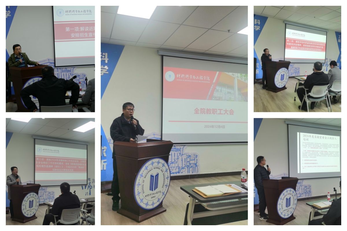 2024年12月4日,我院在致知楼2118多功能厅召开教职工大会,会议由党委书记郑鹏主持。