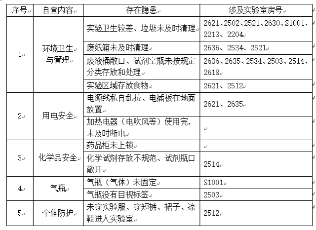 实验室安全隐患汇总表