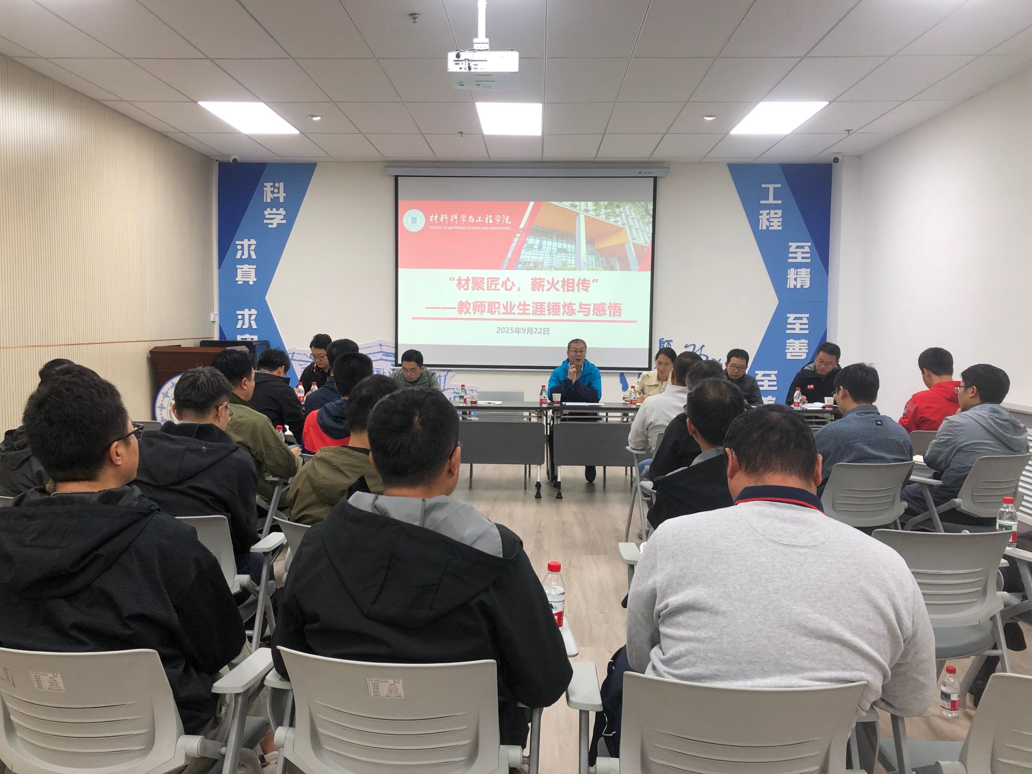 2025年9月22日,材料科学与工程学院举行了以“材聚匠心,薪火相传——教师职业生涯锤炼与感悟”主题的座谈会。本次座谈会旨在通过资深教师的经验分享,促进教师间的交流与学习,进一步提升教师的师德修养和教育教学能力。会议由党委书记秦文静主持,学院领导班子和中青年教师代表参会。