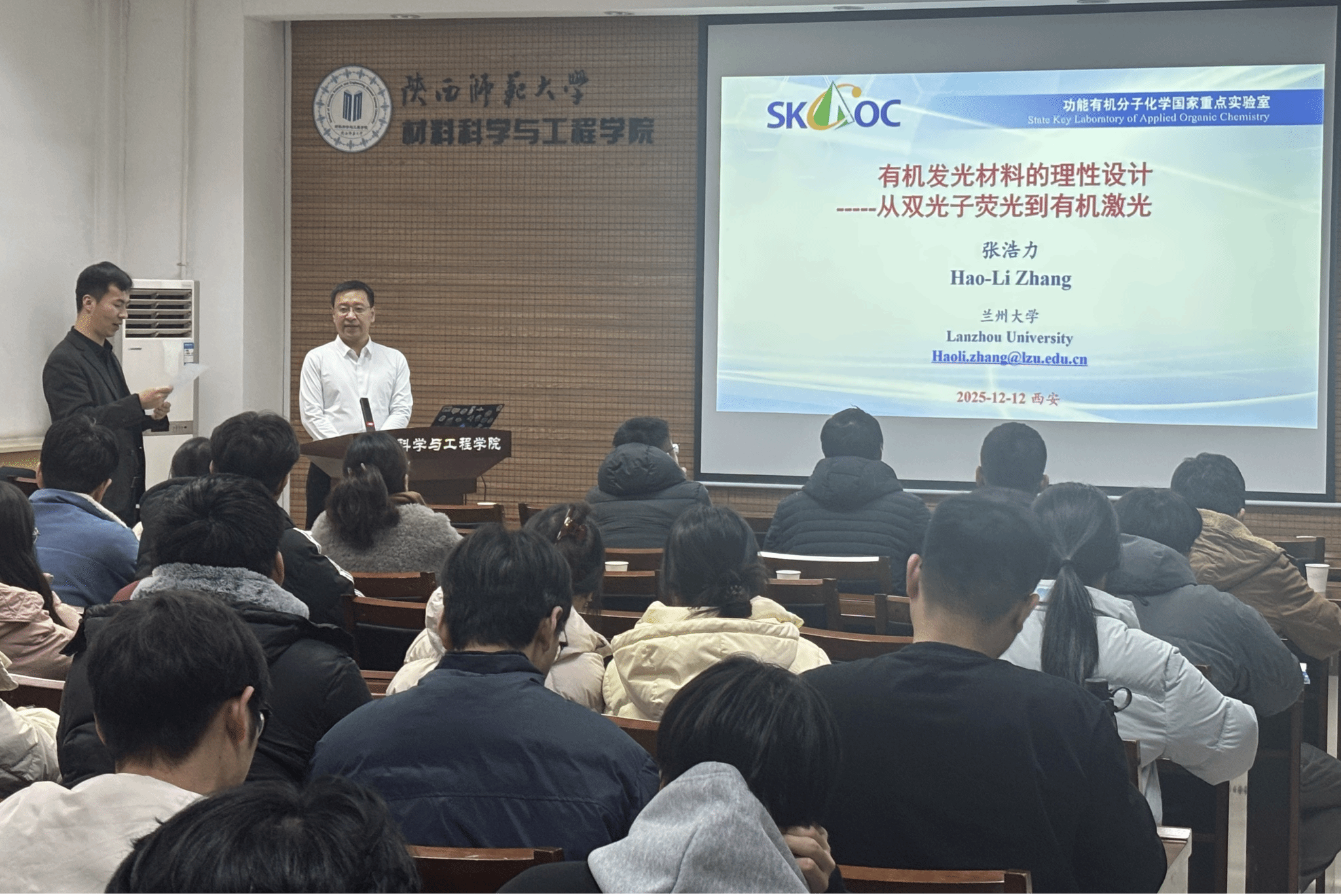 2025年12月12日,兰州大学化学化工学院张浩力教授应邀到我院作了题为《有机发光材料的理性设计——从双光子荧光到有机激光》的学术报告。本次报告系统阐述了一系列前沿光电材料的设计策略、理论计算方法及其在生物成像、激光等领域的应用前景。报告由徐华教授主持,学院相关研究方向的老师和学生参加了本次学术报告。