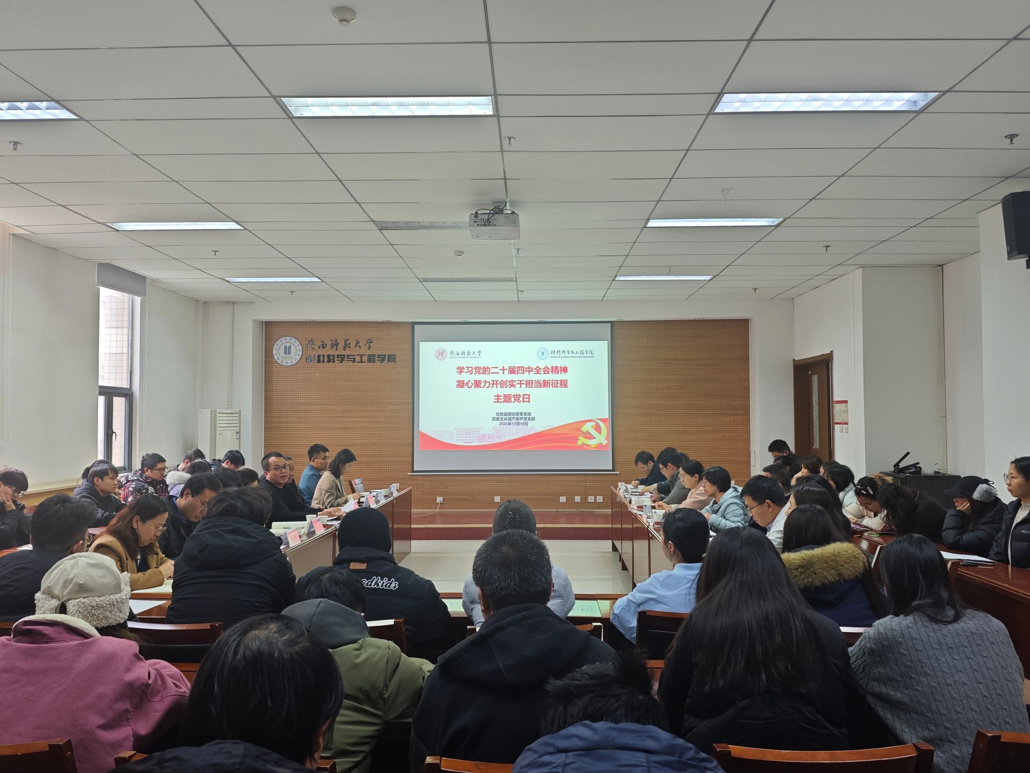 为深入学习贯彻党的二十届四中全会精神,推动全会部署在基层落地见效,12月19日下午,历史文化遗产保护党支部与纪检监察巡察党支部在致知楼2307报告厅联合开展“学习党的二十届四中全会精神——凝心聚力开创实干担当新征程”主题党日活动,学校党委副书记、纪委书记石峰作宣讲报告,活动由学院党委书记秦文静主持。